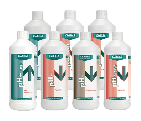 Para subir el pH, no importa en qué fase está la planta en ese momento. CANNA tiene 2 versiones; una de 5% para correcciones pequeñas y el 20% para correcciones grandes.