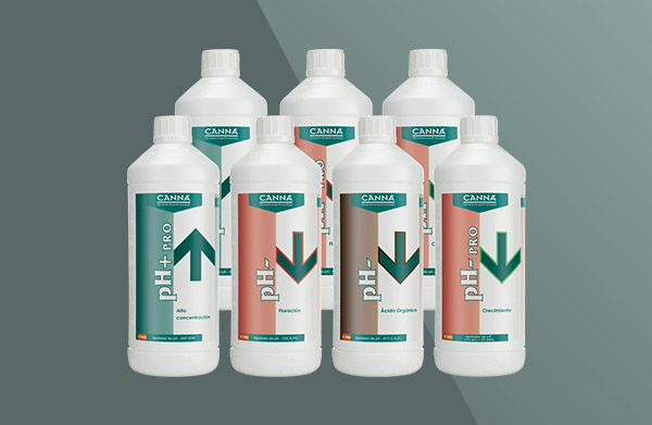 Para subir el pH, no importa en qué fase está la planta en ese momento. CANNA tiene 2 versiones; una de 5% para correcciones pequeñas y el 20% para correcciones grandes.